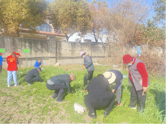 市社会福利中心于3月19日组织社会福利院的老年人和志愿者开展“生态菜园--拔蒜苗”活动。